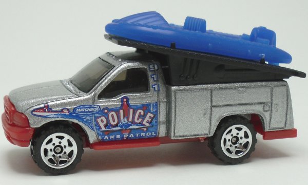 metallic silver, black ramp, blue raft, POLICE LAKE PATROL tampo |