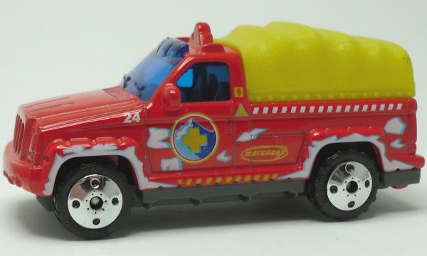 red, yellow canopy, ice and cross designs, new Matchbox logo tampo |