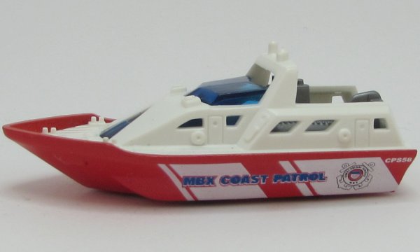 white deck, red hull, MBX COAST PATROL tampo |