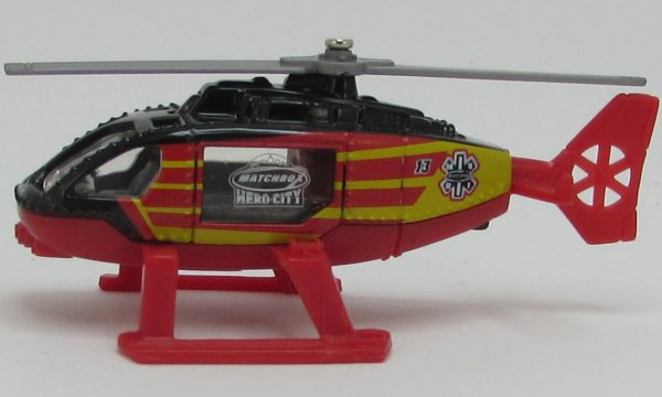 black, gray blades, red tail, red / yellow design, HERO CITY tampo |