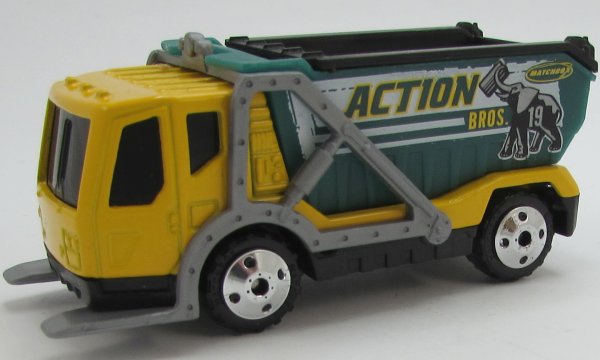 yellow, green dump, black dump insert, gray forks, ACTION BROS. tampo |