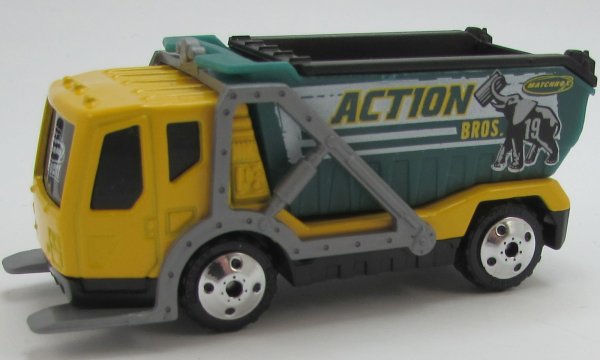 yellow, green dump, black dump insert, gray forks, ACTION BROS., HERO CITY tampo |