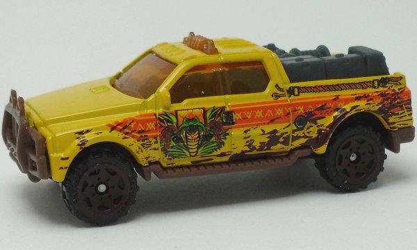 dark yellow, dark gray rear insert, cobra and mud design tampo |