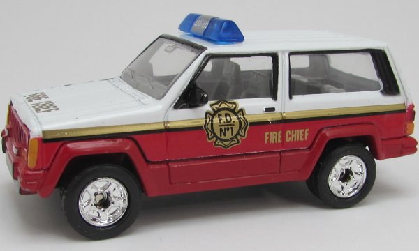 white and red, gray, black and red body molding, blue, silver center roof light, FIRE CHIEF / FD NO.1, detail trim, license CHIEF tampo |