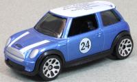 metallic blue, white roof, hood stripes, tail lights, logo (on edge)