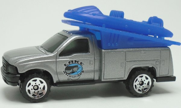 silver-gray, blue raft, LAKE SHAWZEE tampo |