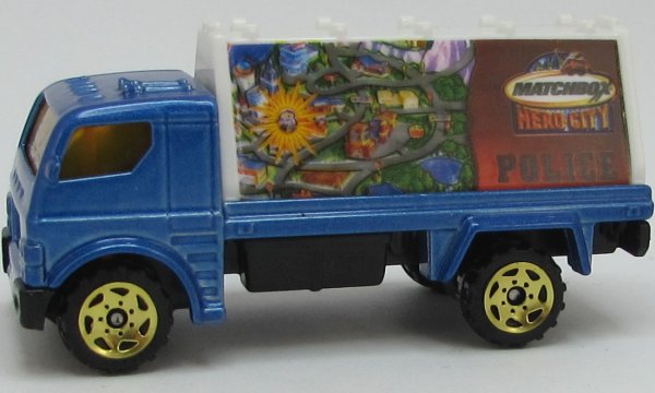metallic blue, white billboard, MATCHBOX HERO CITY POLICE tampo |
