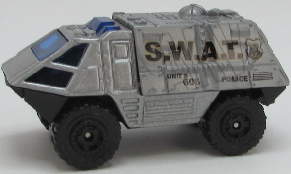 metallic silver, gray canopy, S.W.A.T. tampo |