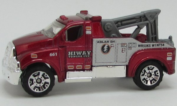 metallic red, dark gray boom area, HIWAY TOWING INC tampo |