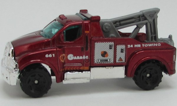 | metallic red, dark gray boom area, GARAGE, detailed trim |