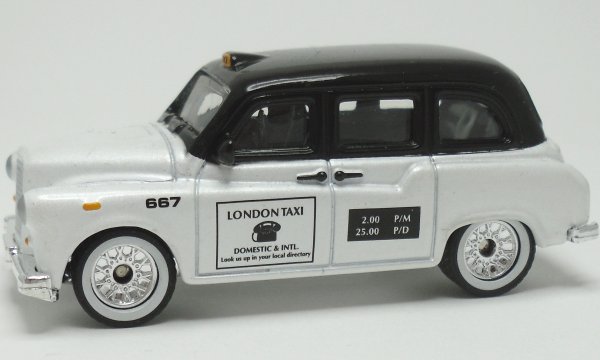 | pearly white and black, LONDON TAXI 667 |