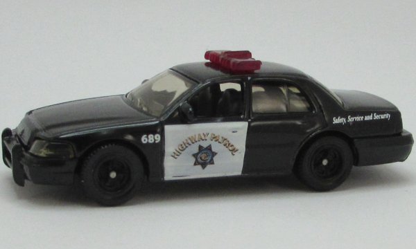 black, red roof light, white doors, HIGHWAY PATROL tampo |