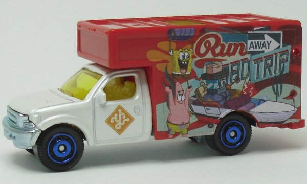pearly white, red container, yellow rear door, RUNAWAY ROAD TRIP deco |