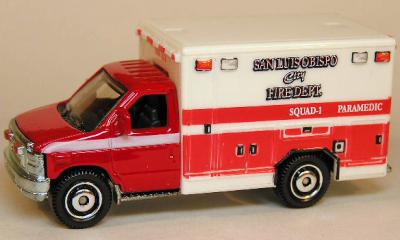 red, white box, SAN LUIS OBISPO CITY FIRE DEPT., white stripe on cab, extra rear design tampo |