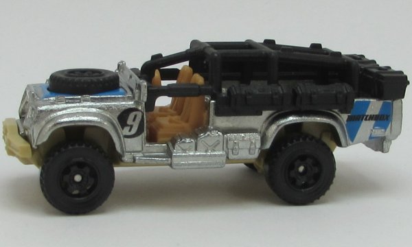 | unpainted, black roll cage, 9 MATCHBOX, blue stripes |