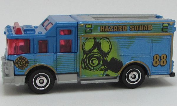 metallic blue, blue cab roof, gray rear cap, HAZARD SQUAD 88, gas mask tampo |