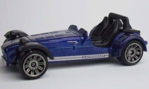 dark metallic blue, black front fenders, silver stripes, CATERHAM tampo |