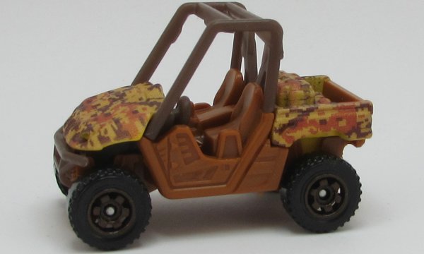 matte tan, dark brown roll bar, multi color camouflage tampo |