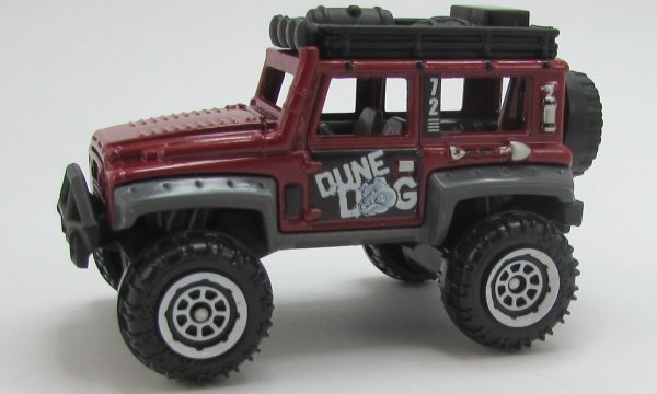burgundy, gray fenders, black roof rack, DUNE DOG tampo |