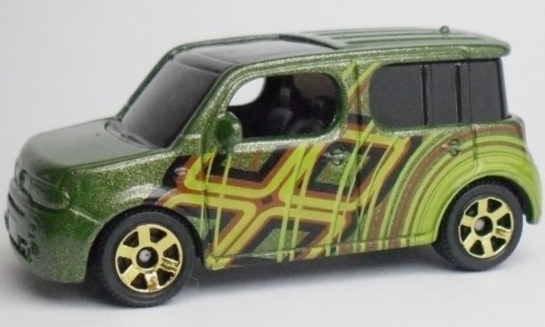 dark metallic green metal flake, nondescript lime, brown and black design tampo |