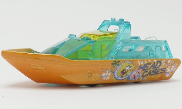 metallic orange hull, translucent light blue deck, HEAD CASES tampo |