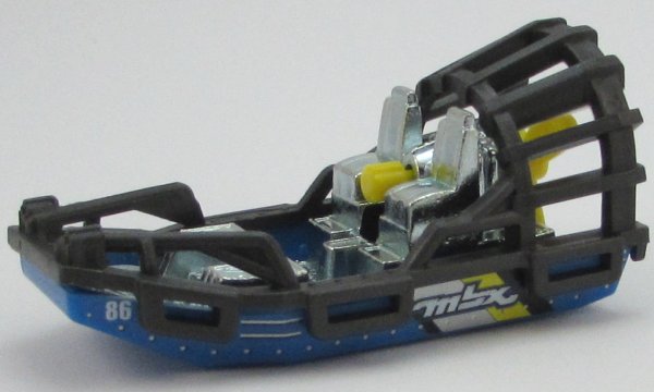 blue hull, unpainted deck, black frame, yellow prop, MBX and stripes tampo |