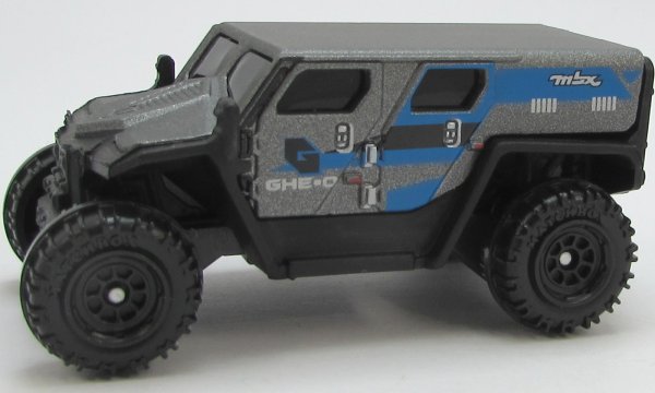matte charcoal, black fenders, GHE-O / MBX and blue design tampo |