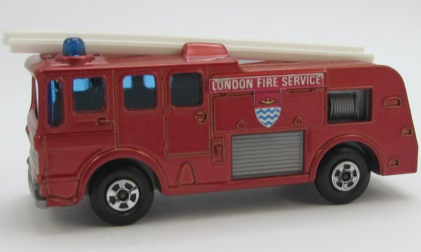 metallic red, with additional panel, thick ridge, without ladder end extension, LONDON FIRE SERVICE labels |