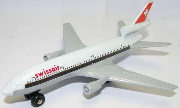 white fuselage, silver-gray undercarriage, SWISSAIR tampo |