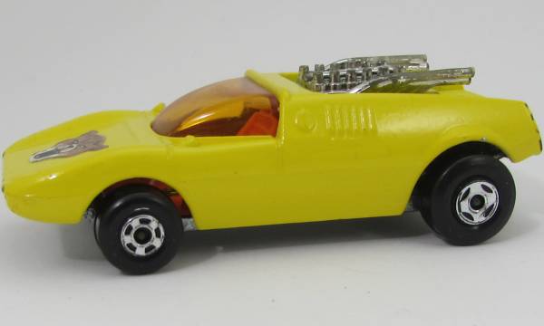 yellow, chrome engine, small MOD ROD at rear, medium brown wildcat head deco |