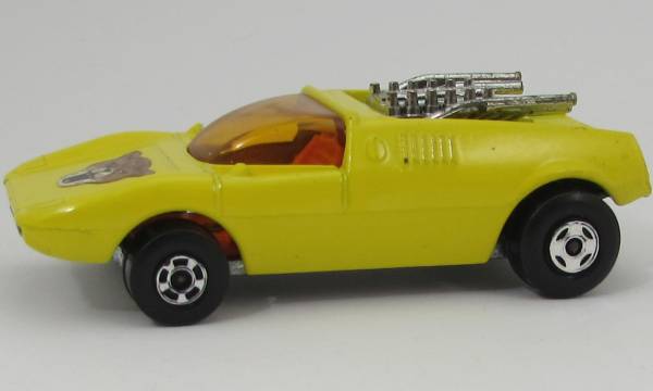 yellow, chrome engine, small MOD ROD at rear, dark brown wildcat head deco |