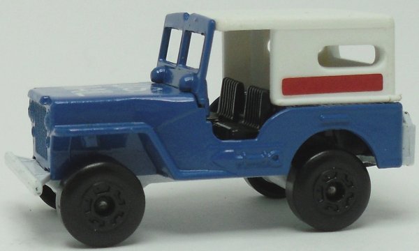 | blue, white textured canopy / small windows, U.S. MAIL tampo, red canopy stripes |