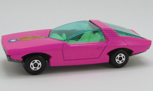 light pink, small holes, pointed trunk edge rear casting, star and flame label with blue circle (straight top) deco |