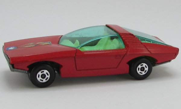 red, large holes, flat trunk edge rear casting, star and flame label with blue circle (straight top) deco |