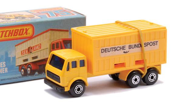 yellow, yellow roof and doors, yellow container, container type base without lettering is part of body, ribs top and bottom, smooth center, opening doors, DEUTSCHE BUNDESPOST (square) labels |