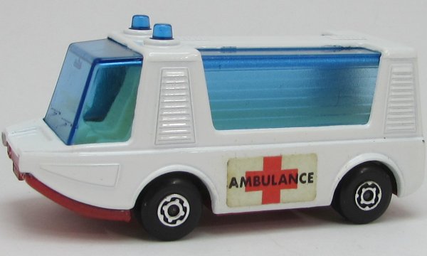 white, blue roof lights, white tailgate, AMBULANCE labels deco |
