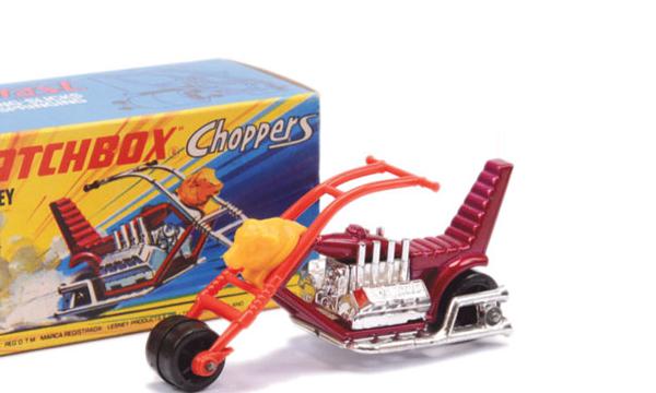 metallic magenta, chrome plastic engine, orange handlebars, open opening between exhausts, no tampo |