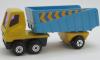 yellow cab, black cab base, orange trailer base, trailer rear casting type no license, with hole, wide braces, no ridge, blue dump, no labels |