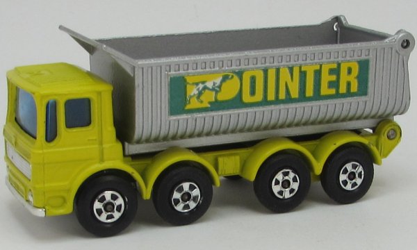 lemon cab chassis, asymmetric inside gaps chassis sides, silver-gray dump, dark green POINTER labels |