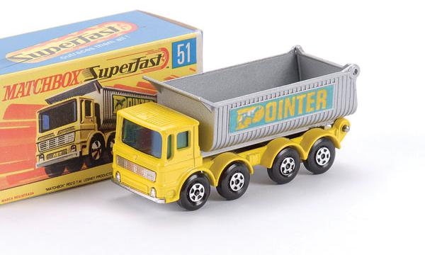 lemon cab chassis, asymmetric inside gaps chassis sides, silver-gray dump, light green POINTER labels |