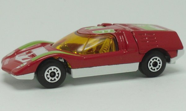 red, chrome engine, straight rear cutout, lime and white 77 tampo deco |