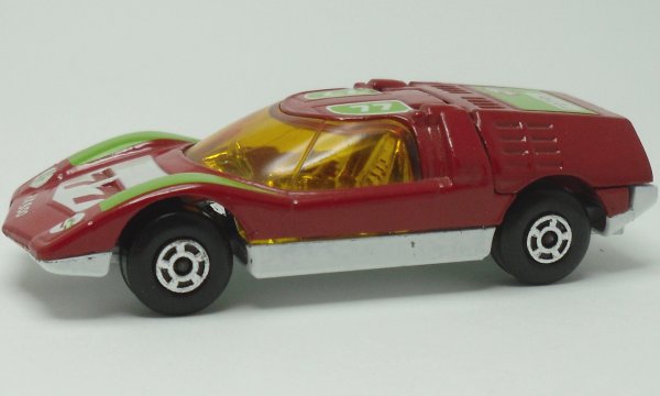 dark red, chrome engine, round rear cutout, lime and white 77 tampo deco |