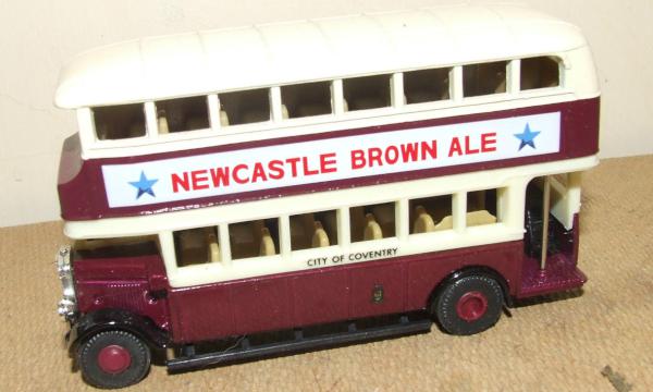 maroon, black fenders, cream roof, NEWCASTLE BROWN ALE tampo |