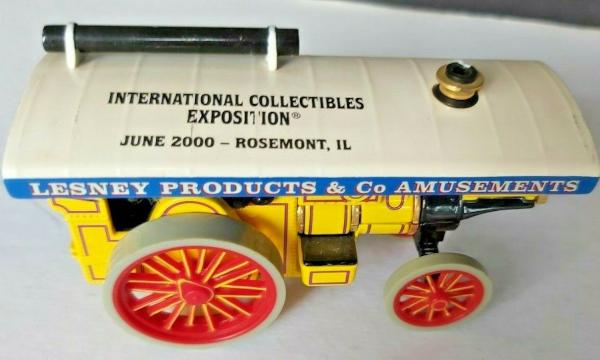 yellow, black boiler, white roof, "LESNEY PRODUCTS & CO. AMUSEMENTS / INTERNATIONAL COLLECTIBLES EXPOSITION JUNE 2000 ROSEMONT, ILLINOIS" tampo |