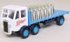 white cab, dark blue chassis, powder blue bed, chrome milk churn load, LIBBY'S tampo |