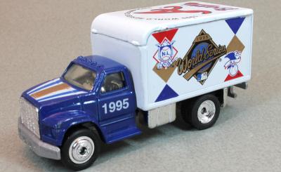 red cab, white container, white container roof, white container door, WORLD SERIES CHAMPS / ATLANTA BRAVES 1995