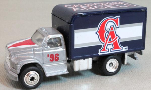 | silver-gray cab, dark blue container, dark blue container roof, dark blue container door, CALIFORNIA ANGELS 1996 |