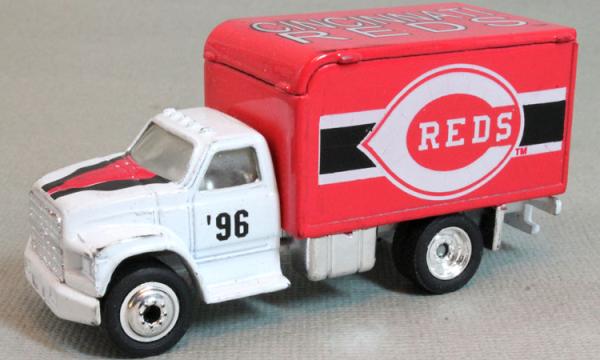 | white cab, pink-red container, pink-red container roof, pink-red container door, CINCINNATI REDS 1996 |