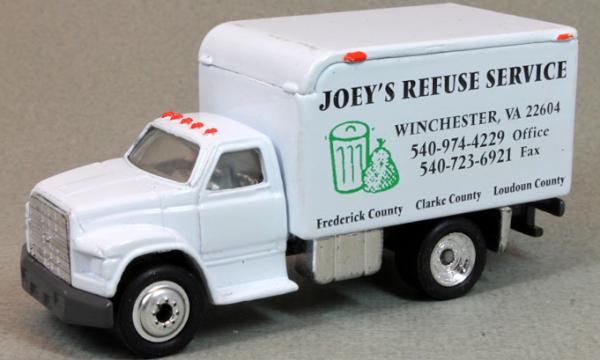 white cab, white container, white container roof, white container door, JOEY'S REFUSE SERVICE tampo |