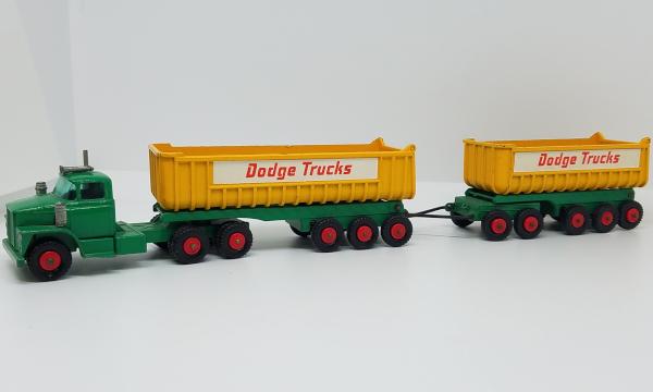 Body green cab, yellow tippers, DODGE TRUCKS labels